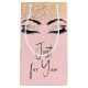 Stängda ögonfransar med ögonfransar, glitter-ögonskugga och guld-glitter punkter på rosa för födelsedagar eller andra händelser. Text kan redigeras. Bakgrunden till färg kan ändras.