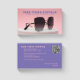 Eyewear Specialist, Optician Affärskort har pulserande färg av korallets rosa fram och blåaktig lila tillbaka. Det foto av solglasen som finns på en vit rund visning visar hur väl ögonslitagen söt i företaget fungerar. Det är underbart för ögonslitage och optometriska professioneller.