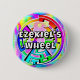 Colorful geometric abstract art... With the possibility of having a word or two... The button comes standard with the words EZEKIEL'S wheel... But you could change it to whatever you got to say! Or delete it and make a statement without saying a word!
