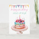 En vacker för hand illustrerad flerglad körsbärsladon-kaka med ett enkelt ljus, en aptitlig lagerkaka med blå glasyr och enkel färgglad vimplar. Enkel "Grattis på födelsedagen, Gör ett önskemål" på framsidan och anpassningsbar "Grattis på födelsedagen" på insidan så att du kan skriva ditt eget personliga meddelande. Inte exakt vad du letar efter? Varför inte kollar in vår Zazzle-butik KLOVERBYKAY där vi har flera växande kollektioner för presentinslagning, Hem & Köksartiklar, gratulationskort och mycket mer. Som en liten duo bestående av mamma och dotter uppskattar vi verkligen varje klick, gilla-markering och följare, så om du kunde tänka dig att klicka på gilla-knappen skulle det verkligen hjälpa oss. Tack för att du