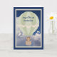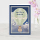 Skaffa ett bra kort för barn med ljust grönt luftballong och en söt liten apa i basket. Bakgrunden är ett mörk blått grumligt himlar. Perfekt kort som ska skickas till ett sjukt barn.