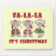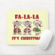 Julskjortor, mugg, kort, klistermärken, tote bags, magneter och andra helgdag och presentartiklar för julen med tre söta julmöss och text som lyder Fa La IT:s jul.
