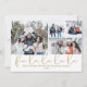Ett elegant fotoholiday-kort med dina 4 favoritbilder och ditt familjenamn och datum i klassisk modern typsnitt med ett chic skript julmeddelande. Designad av Thisisnotme©