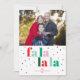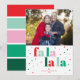 Sprid julstämning med vår röda gröna rosa platta julkort för foton med texten Fa La La La. Det glada kortet har modern typografi och festliga färger i rött, grönt och rosa. Framsidan av kortet har en plats för ett foto av din älskade familj och en glad hälsning med texten "fa la la la". Baksidan av kortet har matchande färger med feta ränder för en extra glad avslutning. Anpassa det perfekt med ditt foto och din julhälsning till dina nära och kära.