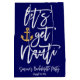 Ge dina gäster en present på ditt sjöfartstemanade singelsemesterfirande med hjälp av denna stilfullt roliga "Låt oss bli nauti" anpassade vita moderna kalligrafidesign med ett guldankare mönster på sidorna. Anpassa den med ditt namn och festdatum genom att välja "anpassa denna mall". För frågor eller förfrågningar om denna design, vänligen kontakta oss via chatten; vi hjälper dig gärna!