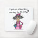 Få ut ur sänghumorT-tröja, hänger lös kudder muggar, kort, klistermärkear, magneter, keychains, prydnadar, mousepads, bagagemärkre, och andra morgoninställningdräkt och gåvor för någon som inte är exakt en fläkt av att vakna upp tidigt! Stella i henne den rosa nattlinnen och roben frågar "mig har ut ur säng i morse för DENNA?".