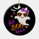 Den här helgdagarna har ett sött spöke som bär solglasögon och ett båge i sitt hår som flyger mellan stjärnor med fladdermus och texten "fab BOO lous" i modern populär lila och orange typografi #halloween #helgdagar #säsong #festive #boo #spök#gull#halloweenornaments #ornaments #semesteroweendecor #halloweenstyle #halloweenstyle trickortreat #modern #design #designer #girly #home #homedecor #decor #holiday decor