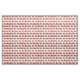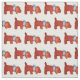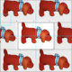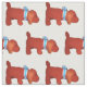 Cute Red Puppy med blå och vit färg är jämnt fördelad över vävnaden. Fotobild av leksak hund virkade i garn.