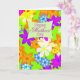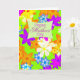 Ett mors dag-kort fullt i kärlek. Fabulous "op art" blommor på ljusa färger. Ett vibrerande kort som säger "LYCKLIG!" De flerfärgade blommorna tumlas över gröntens bakgrund. Se hela korten i min butik. All upphovsrätt till teckningar från Norma Cornes.