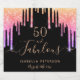 Ett trendig och en elegant som fyller 50 år vin. En klassisk svart bakgrund som dekoreras med regnbåge i färgaden faux guld glitter, färgdroppstift i lila, rosa och ro guld. Med texten: 50 och fantastisk. Anpassa och lägg till ett namn och ett datum. Födelsedatum eller datum för party. Golden text. Ord Fabulous är skriven med ett modernt handskript i stil med dekorationer.