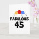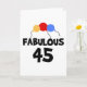 Tre primära färg-ballonger och svart text som lyder "Fabulous 45" på 45-årsdagskort, T-shirts, mugg med flera.