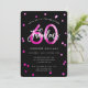 Fira din fantastiska 60:e Födelsedagsfest med dessa moderna, elegant-, chic- och partiinbjudningar med penselhandsbokstäver och rosa-/svart trendig för kvinnor. Bakgrunden till färg kan ändras under "anpassa ytterligare". Del av uppsättningen "Fabulous 60:e".