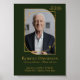 Dela nyheten om en nära anhörigs bortgång med värdighet och grace med hjälp av denna djupgröna Facebook-mall för dödsannonser. Med en snygg, minimalistisk design erbjuder den plats för ett foto, viktig information och ett hjärtligt meddelande.