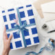 Fack - djup marin blå på vitt presentpapper