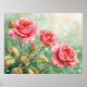 Vattenfärgsgrafik av blommande röd ros adorberad med färska droppar av vatten