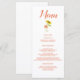 Den här designen är en vacker temameny för solrosblommor och innehåller "Menu" som är skriven överst med ett kursivt teckensnitt för orange. All information skrivs ut i orangens läsbara teckensnitt på en vit bakgrund. Anpassa som du vill. Menu Design: BröllopsbyRhoadie-Blommigt teckning: AMBillustrations http://www.etsy.com/shop/AMBillustrations/