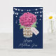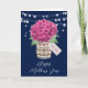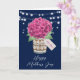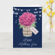 Snygg rustik blommigt Lycklig Mors dag-kort med rosa hydrangea och baby utandning bouquet inuti en mason burk med en anpassningsbar märkre. Anpassa den här mallen enkelt för att skapa ett unikt Mors dag-kort. Den här mallen kan vara personlig till alla tillfälle.