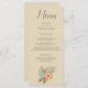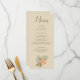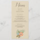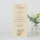 Den här middagsmenyn är en vacker stranddesign och har ett vackert brunt teckensnitt på en beige bakgrund. Det finns en vacker blå och persikoblomma vid grund. Anpassa din idag!