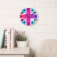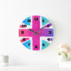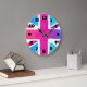 Kyla den tittar vattenfärgdesignen av den brittiska flagga/den fackliga jacken. Ljusa och livliga vattenfärger inkluderar rosor, lilor, blått, turkos och orangen. Den färgblandningen och blandningen som skapar tillsammans mjuka kanter med en molnnågot liknande, verkställer. Clockfacen använder en svart stilsortsiwith som stort djärvt numrerar. Lätt att läsa ta tid på med en konstnärlig väderkorn.