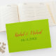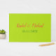 Denna gästbok från bröllop är verkligen underbar och av ett slag. Med en ljust grönt bakgrund med ett rosa- och grönt-teckensnitt. Parets namn presenteras med ett kursivt typsnitt i modern rosa med bröllop-datumet under grönten. Anpassa din bröllop-gäst bok i dag!