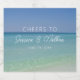 Den vackra flaska-etiketten för badchampagne i stranden har ett serienfotografi av havshorisonten för ett destinationsbröllop på kusten under sommaren. Behandla dina gäster till denna vackra tropiska mottagningsdekoration på en eftermiddag i havet på din favoritö med den här söt fotografin. Slutförd med chicens vita skript för ett uppskalat kustutseende.