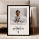 Ett minimalistiskt och modernt fadderminne med ditt valda foto, personlig text under med titeln och datumet då de blev fadder, och en delikat hjärtdetalj längst ner. En tidlös pjäs för att markera ett verkligt speciellt ögonblick.