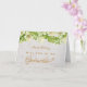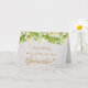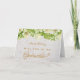 Denna eleganta blommiga postkort med förslag om "Vill du vara min fadder" har en marmorerad bakgrund och vita liljor på sin övre halva.