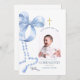 Fråga ditt barns faddrar på det mest meningsfulla sättet med detta eleganta fadderförslags kort. Designat med ett mjukt blått band, akvarell rosenkrans och utrymme för ett personligt foto, är detta kort perfekt för en babypojkens dop eller kristning. Anpassa namnen, meddelandet och signaturen för att skapa en souvenir som de kommer att värna för evigt. Ett vackert och trofyllt sätt att säga ”Vill ni vara mina faddrar?”
