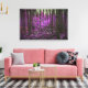Den här ansträngda väggkonsten på arbetsytan har ett skogslandskap i skuggor av lila och svart.