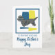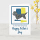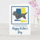 Dandie Dinmont Terrier hundsilhuett i gul, blå och svart modernt rutmönster. ‘Till den bästa hundpappan’ och ‘Glad Fars Dag’ på utsidan och älskvärda meddelandet på insidan kan ändras till vad du vill. Ett bra sätt att fira en djurägares Fars Dag.