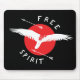 Fri spritgrafik och textdesign. Logotyp av en fågel av ber som flyger utan jägarpilar. Mouse Pad for bird älskare och free thinkers.