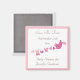 anpassadet söt rosa och vit personlig Spara Hetten Babykläder / Favormagnet med en söt vektorbild av rosa fågel som bär ett kuvert i sin skak och med en barnkläder för garderoll och rosa bakom sig - för Webbdesign. Anpassadet är helt och hållet för att uppfylla dina behov och designobjekt kan flyttat och storleksändras. En annan roligt från Groovy Graphics.