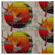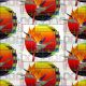 Fågel av växten för paradisblomma (Strelitzia) på geometrisk solnedgång. Designat vid sequinen drömm studion.