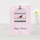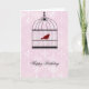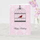Fågel i för vintagestil för bur ett rosa damastast kort för födelsedag