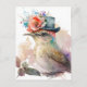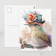 Fågel i Finare Hat med blommor Vattenfärg Vykort