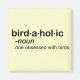 Den här roliga födelsetecknet formateras som en definition som finns i ordlistan. Här är ord förlossningshotell och definitionen är "en besatt av fåglar". Du kanske känner till några sådana, eller så är du själv en morfar! Du kan helt anpassa den här presenten! Lägg till text, byt färg, flytta runt designen, plocka ett annat stil - gör det till ditt eget!