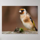 Vild goldfinch-fågel porträtt som ligger intill Europa, även känd som Carduelis carduelis. Goldfinken har ett rött ansikte och ett svart och vitt huvud. Män och hondjur är mycket lika, men den röda ansikte är något större på hanfåglar.