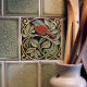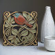 Denna keramiska plattan har ett tryckt mönster med fågel- och blomstermotiv som påminner om Mackintoshs ikoniska stil. Han var en framstående skotsk arkitekt, formgivare och konstnär inom Art Nouveau-rörelsen. Rena linjer, geometriska former och en stark känsla för symmetri kännetecknar hans verk. Dessa element är vackert representerade i vår kollektion av keramiska plattor.