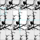 Den här designen av konst i contemporary har ett svart och vitt, modernt geometriskt mönster i abstrakt av en silhuetterad Junco-Mörk (Junco hyemalis) som genomborras på ett tomt gren högt i träd. Fågeln är i själva verket en sorts liten, grått- och vit sparv. Du kan enkelt anpassa den vita bakgrunden till valfri färg som kostymer ditt projekt.