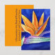 Den livfulla solfjäderliknande kronan av orange kronblad på en paradisfågelblomma kontrasterar mot den djupt sammetslena kungligt blå bakgrunden. Den akvarellkonstnärliga blomman visar en profilbild av paradisfågelblomman. Denna blomma är känd som Tranblomman i Sydafrika. Personalisera paradisfågel-inbjudningskorten eller inbjudningarna med din egen text och bilder med hjälp av knappen "Anpassa" för att skapa en speciell paradisfågelpresent eller kort!
