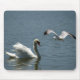 Fotografi taget vid Lake Morton i Lakeland, Florida på vad som verkar vara en fågel som leker med en svan, skapat på en musmatta.