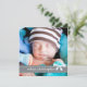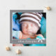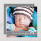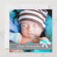 Trendig grått och blå design är bara perfekt för att meddela att din lilla pojke kommer. Med ett storlekt foto på framsidan, framhävt med ett sött band av mjukt grått, mönstrad med små cirklar och täckt med en blå båge, framhävs även här din lilla ängels namn. På baksidan är textrutorna designade med utrymme för att alla viktiga uppgifter om baby ska placeras på en söt baby blue bakgrund. Det ser underbart ut med ett svartvitt foto också! En underbar första introduktion av din lilla pojke till familj och vänner.