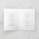 Bild av det grå fågelparets konturteckning teckning av en öppen fågelburk som hänger från ett blommande vår träd med hjärtan i blå nyans. Chicens moderna bröllop är en del av den romantiska samlingen av blåfågelburar i bröllop. Redigera dessa bröllopsprogram med ditt eget namn, data, ceremonins ordalydelse, bröllopsfestens assistenter och tack. Unik teckning och design av Sarah Trett för www.mylittleedenweddings.com på zazzle.