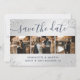 Fågelblått och Silver Glitter fotokollage Bröllop Spara Datumet