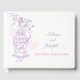 Bröllop gäst bok med två love birds-konturbilder teckning av öppna fågelburar som hänger från ett blomstrande vår träd med hjärta. Anpassa med ditt eget par namn. Perfekt att lämna på ett mottagningsområde för gäster till ord av råd, ett underbart keepsakemento från er giftermål dag. Unik konst och design av Sarah Trett. www.sarahtrett.com för www.mylittleedenweddings.com