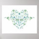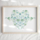 Vackra blå och gröna mjuktonade mesar i ett blomfyllt hjärta med orden "Älska Mer" av Jenn Steffen Art för Studio Posies. Vacker dekoration för barnrum eller barnkammare.