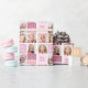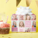 Söt rosa som är papper med en 6-fotomallkollage av födelsedagskalan och hennes monogrammade namn på coolan fyrkantiga bredvid en roligt födelsedagskalas. Snygg personlig Grattis på födelsedagen-presentfigurationen för ett barn.