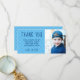 Cute Blue White Mönster Boy Photo Birthday Tack för ditt kort. Lägg till foto, namn och text och gör ett sött födelsedagstack för en pojkes födelsedagsfest.