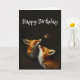 Födelsedagskort med söta rävar tittar upp på en fågel