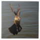 Fotografi av en söt Grackle Bird som flyger ovanför vatten, tryckt på en Tile. — Du kan använda den här plattan i köket, runt bassäng eller i badrummet med resten av plattorna.